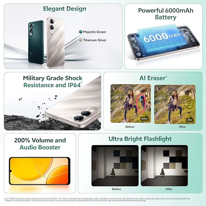 Vivo Y19s 5G (Majestic Green, 6GB RAM, 128GB Storage)